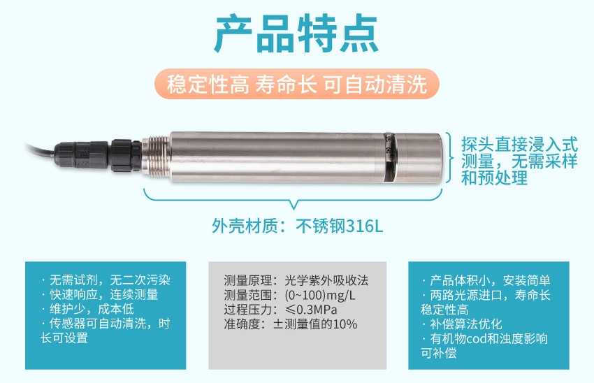 米科_ADI5050工业离子硝氮电极 较市面同类产品体积小,安装维护简单,寿命长光衰小,稳定性高,带清洗功能