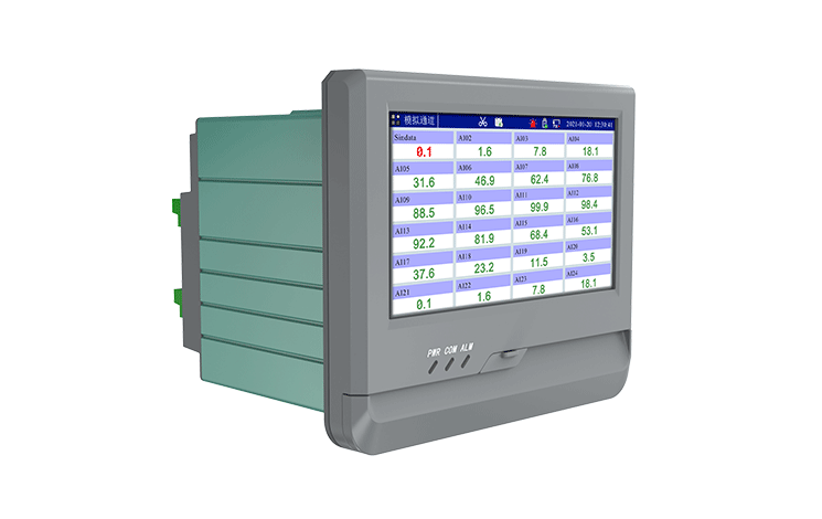 触摸式彩色温度记录仪具有 60 个运算函数、24 路模拟量输入、3 路开关量输入、3 路脉冲量输入、6 路模拟量变送输出、16 路开关量输出,可实现运算、显示、记录、报警、分析统计报表、高速采样等功能,通过 RS-232/RS-485 和以太网通讯接口,可实现远程实时监控、组态管理、历史数据读取等功能,通过 U 盘可实现组态管理、监控画面管理和历史数据管理等功能。