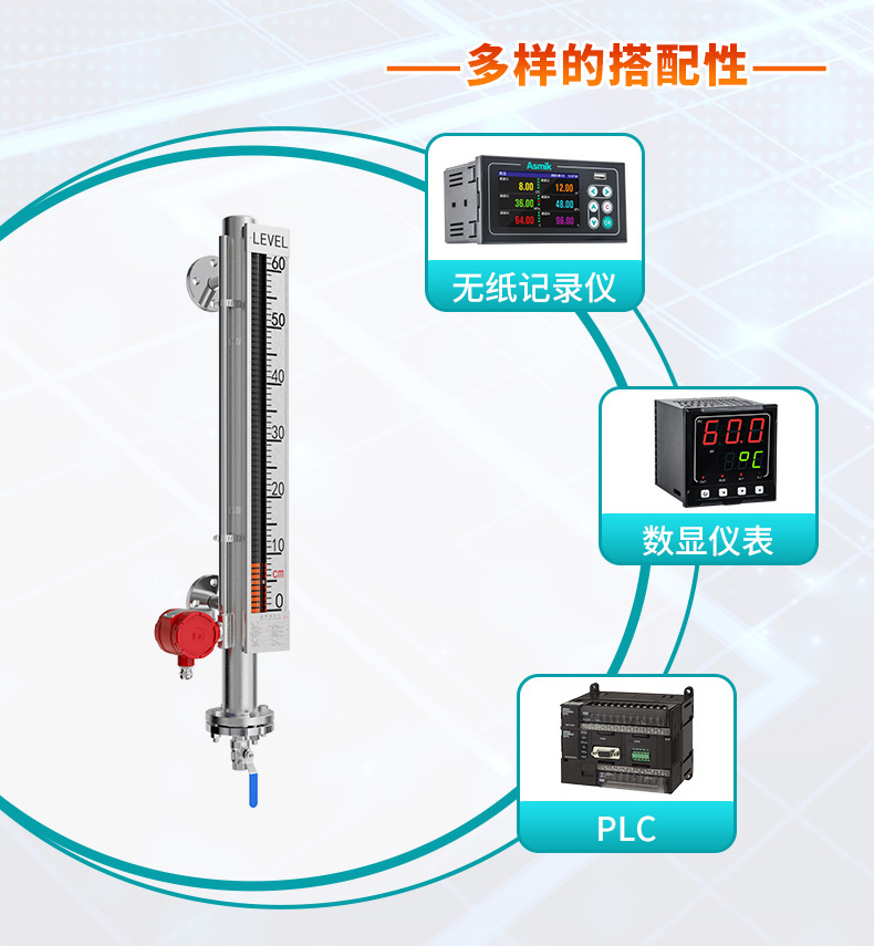 该系列液位计配上液位控制开关、报警开关,可实现液位的控制、报警和连锁,配上内置式一体化液位变送器,可将液位(界面)信号转换成二线制4~20mADC标准信号,实现液位远距离检测和控制。广泛应用于电力、石化、化工、冶金、环保、船舶、建筑、食品等各行业生产过程中的液位测量和控制。