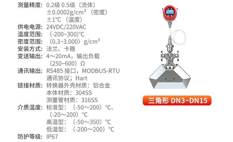 科里奥利质量流量计 _三角型 0.2级精度、可测浆液、安装无前后直管要求